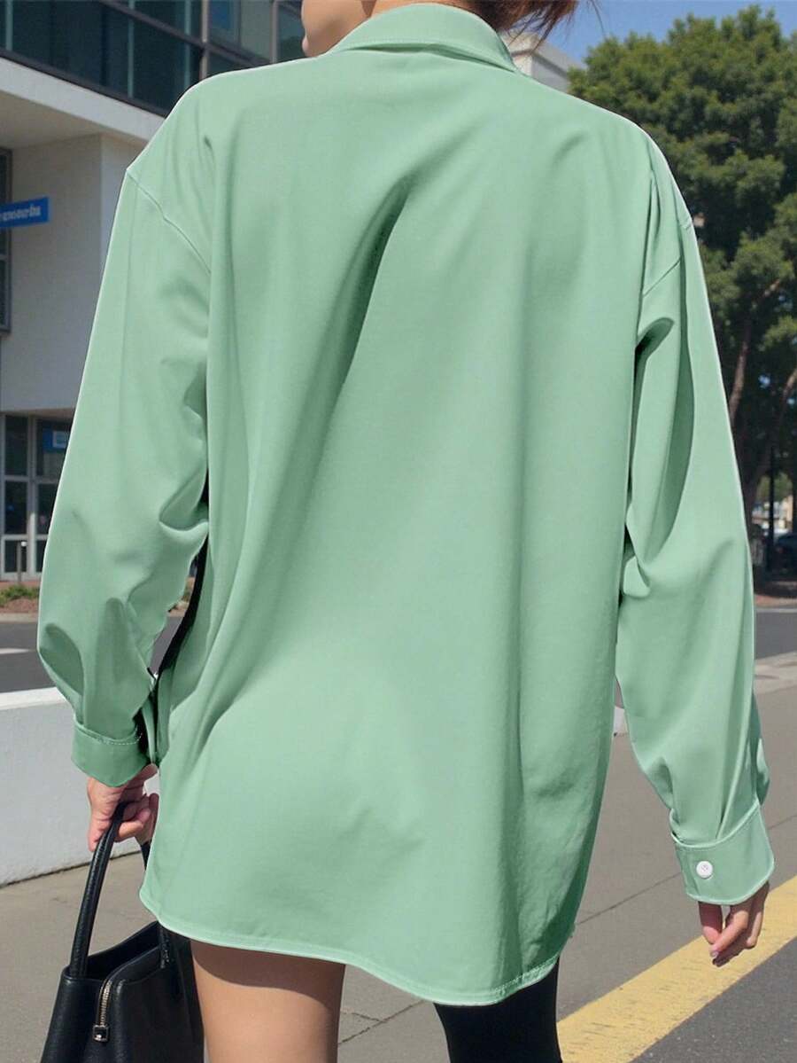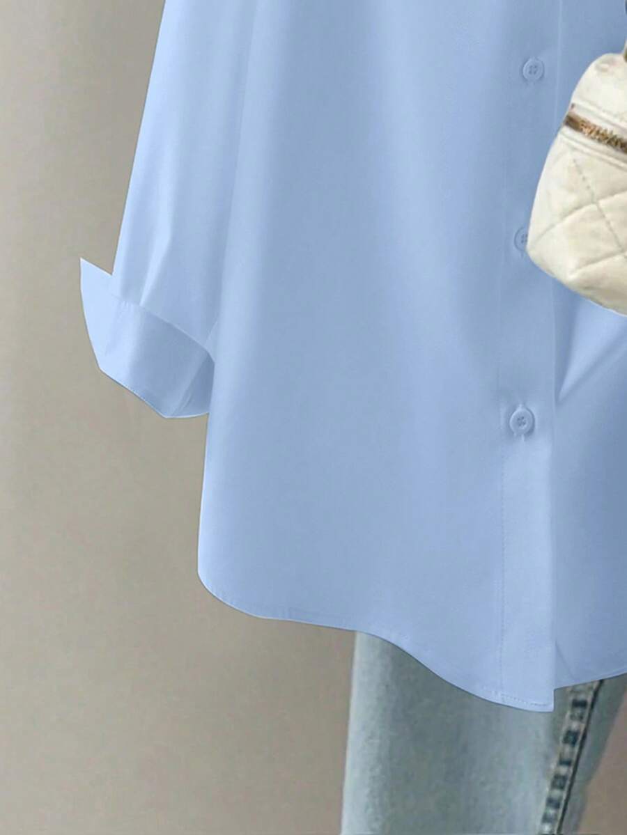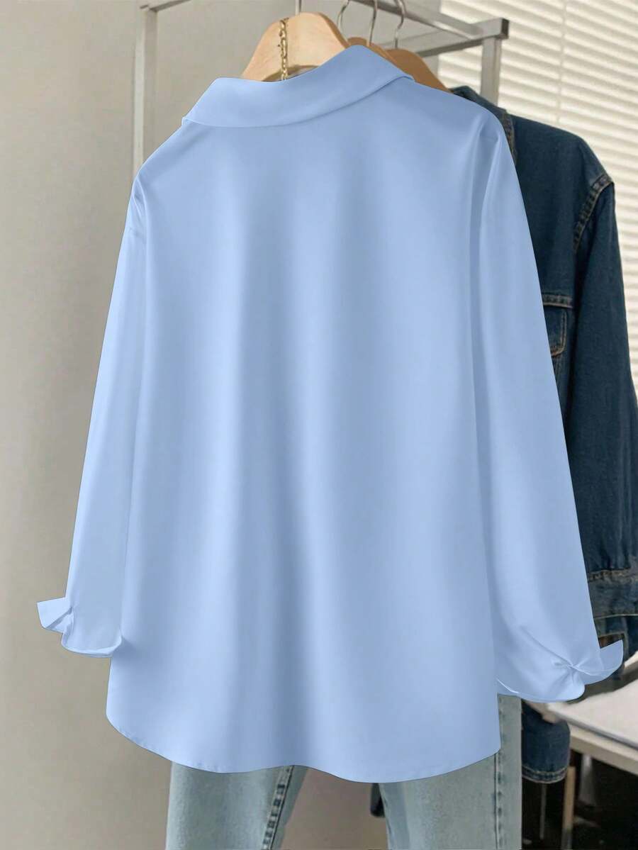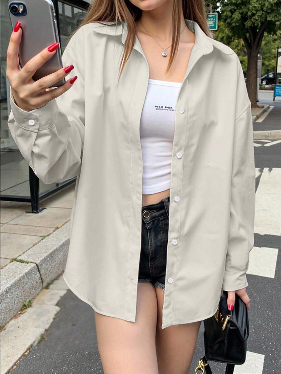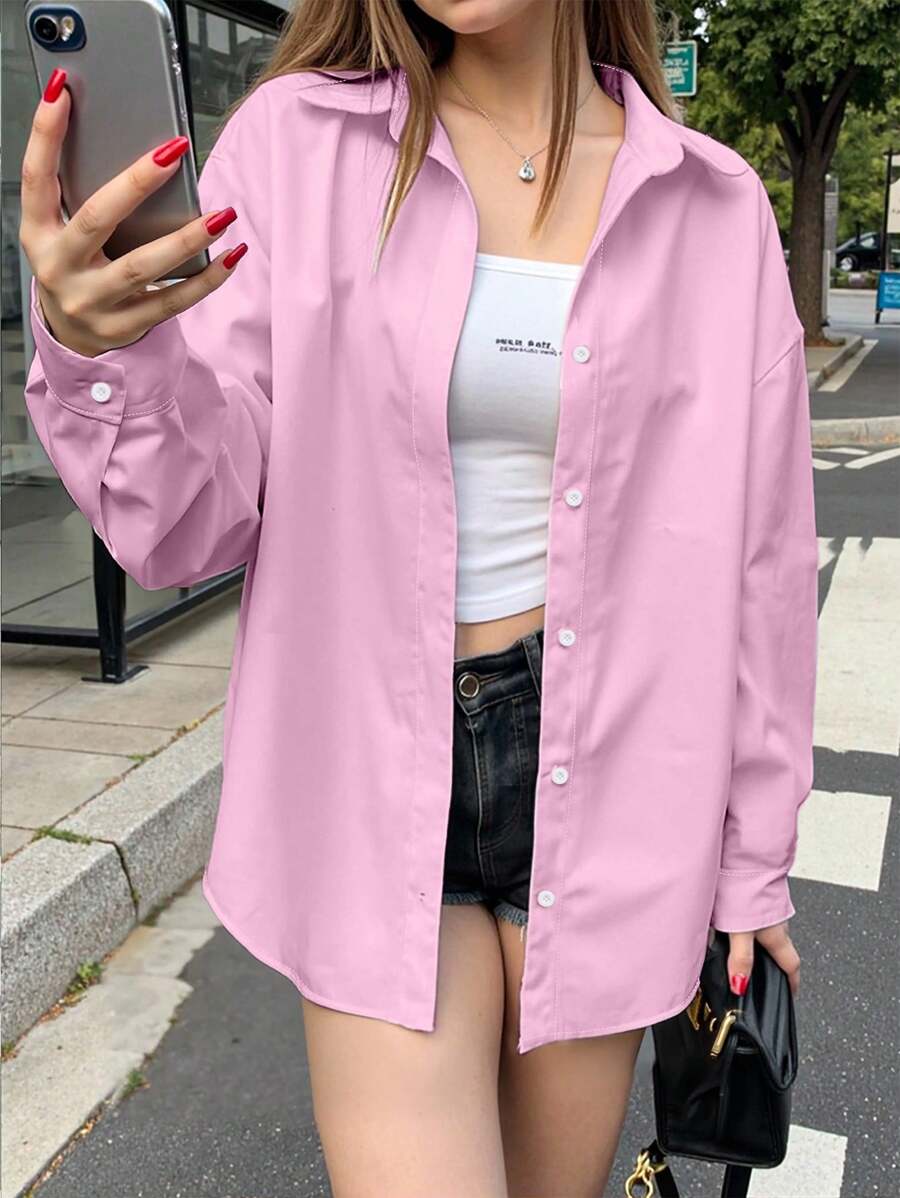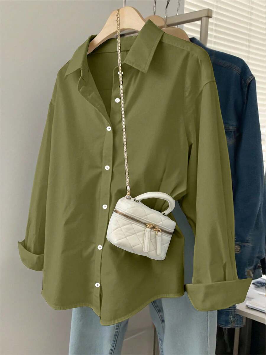 INAWLY Camisa feminina casual de manga comprida com caimento solto, minimalista e versátil para uso diário