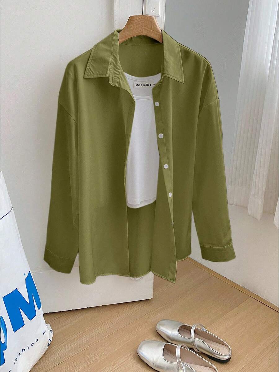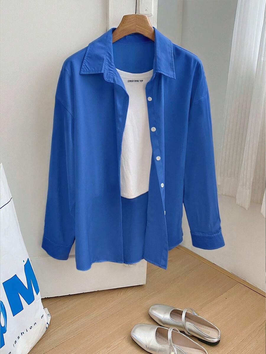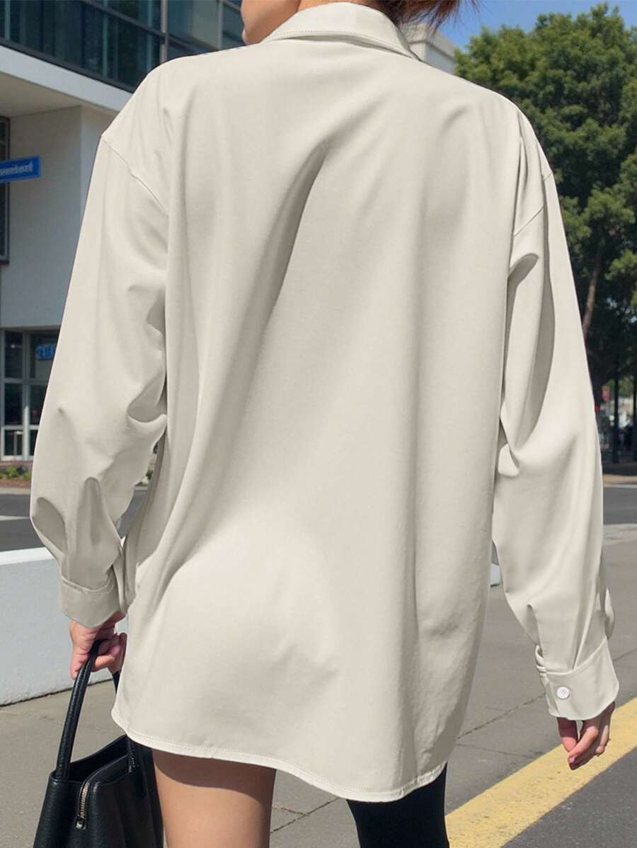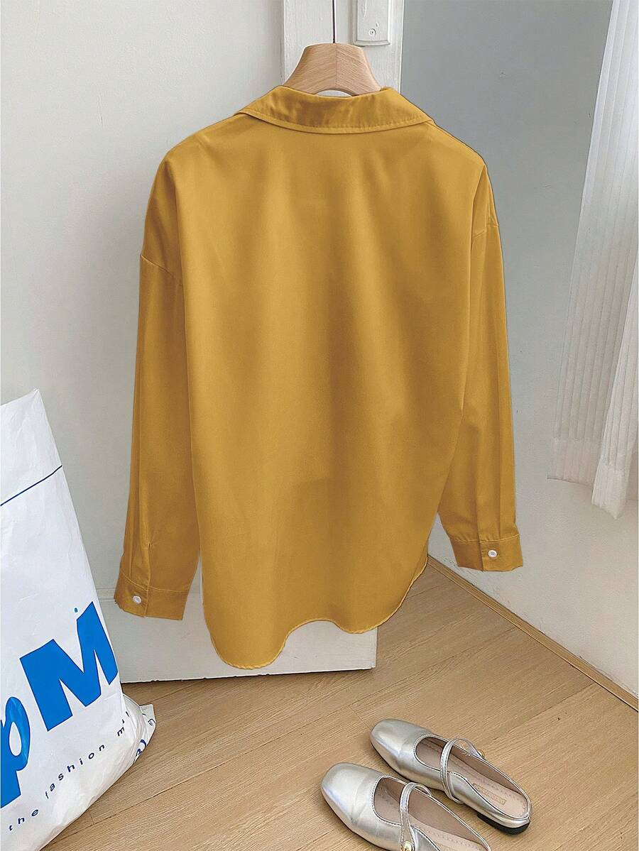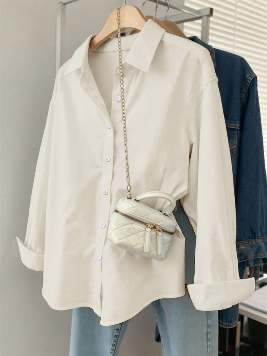 INAWLY Camisa feminina casual de manga comprida com caimento solto, minimalista e versátil para uso diário