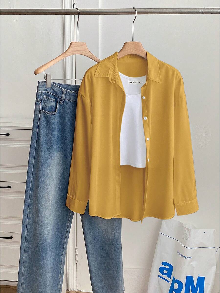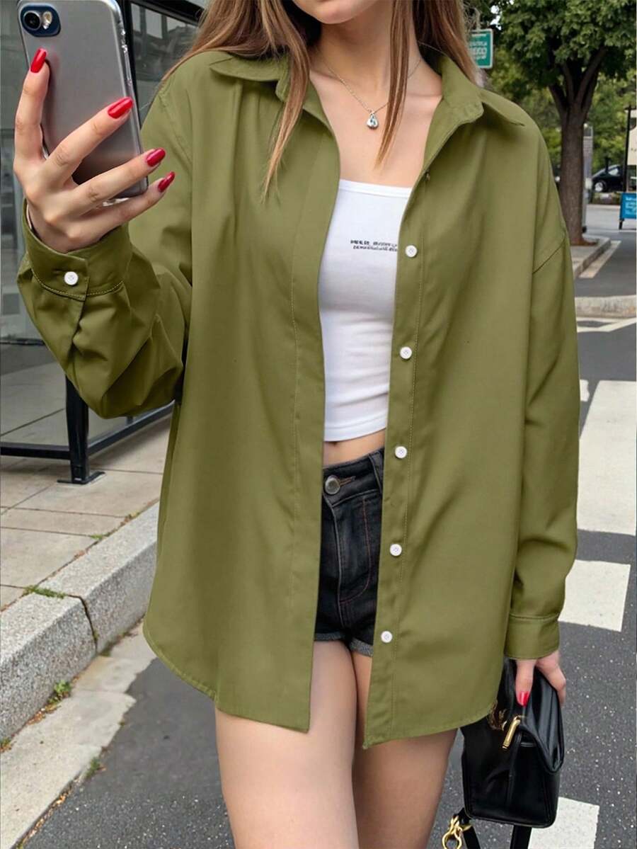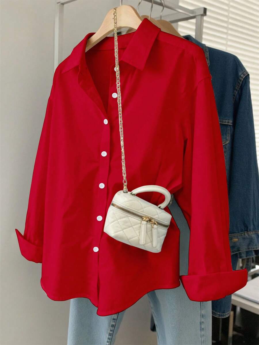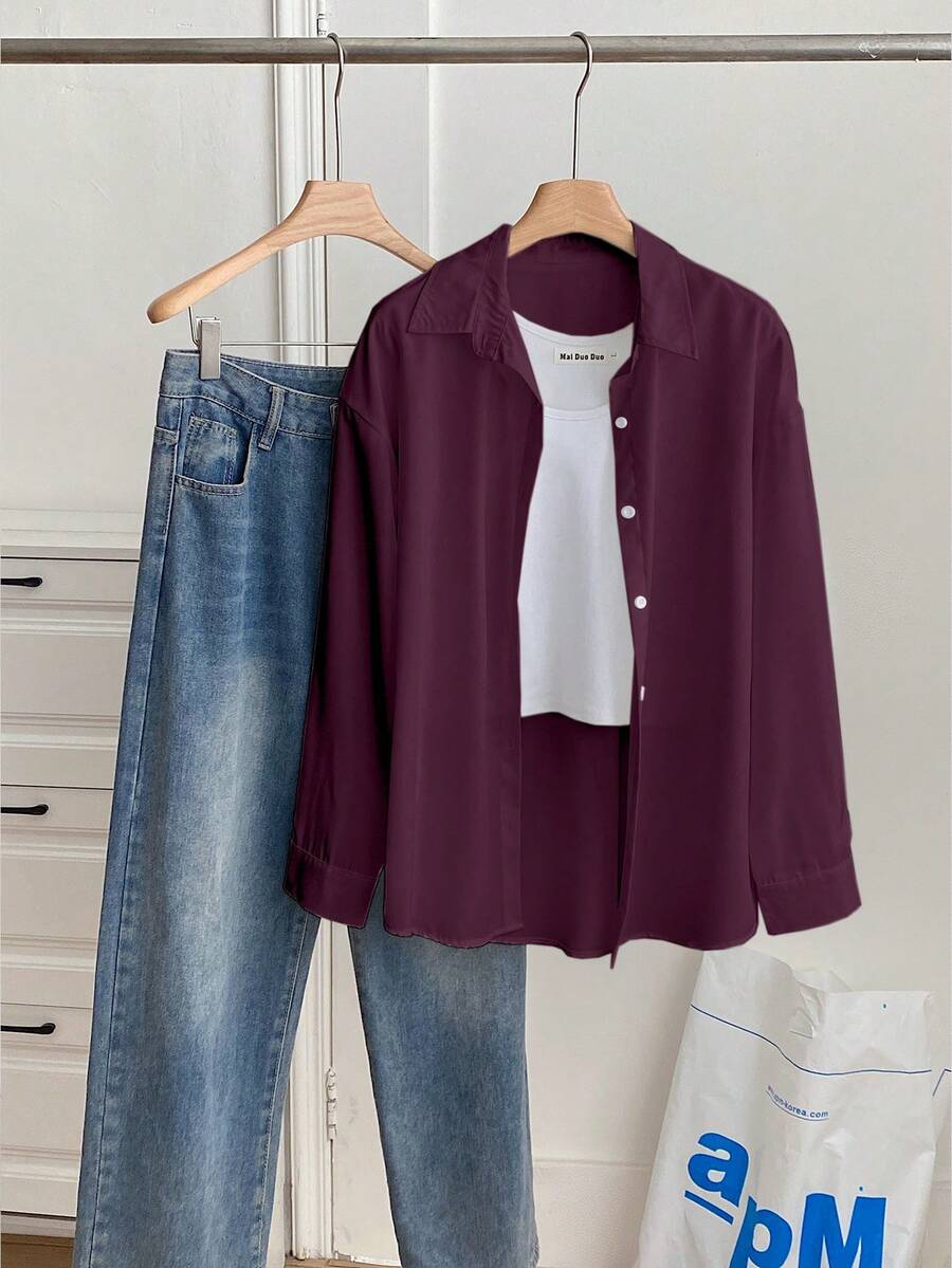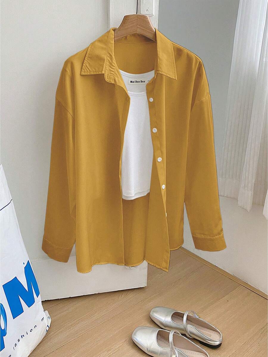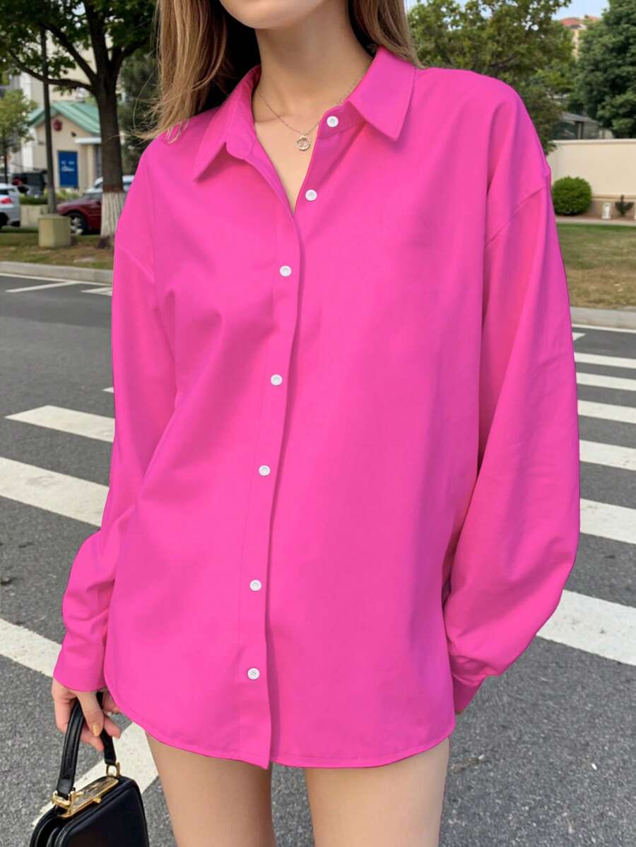 INAWLY Camisa feminina casual de manga comprida com caimento solto, minimalista e versátil para uso diário