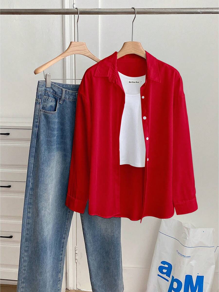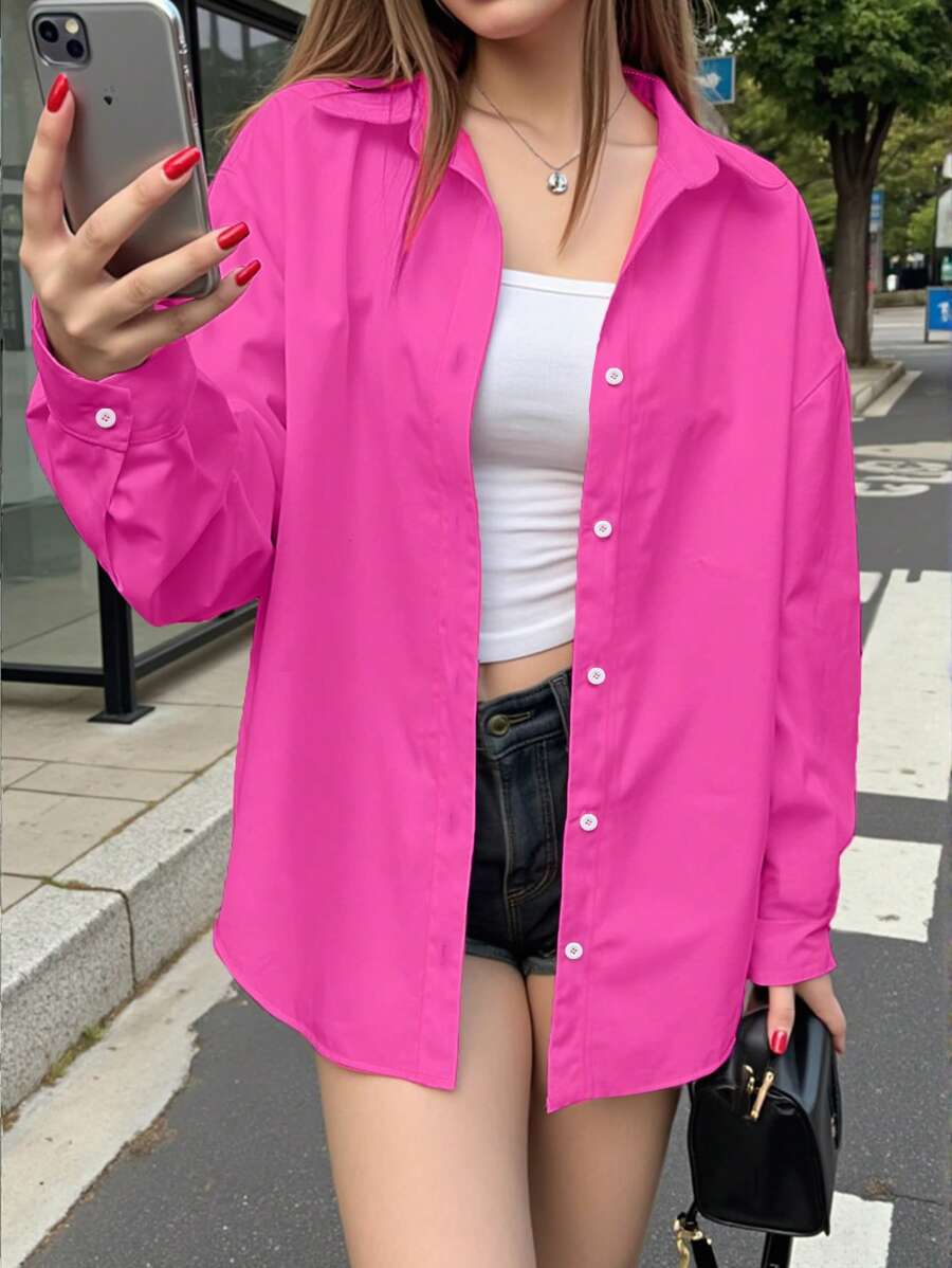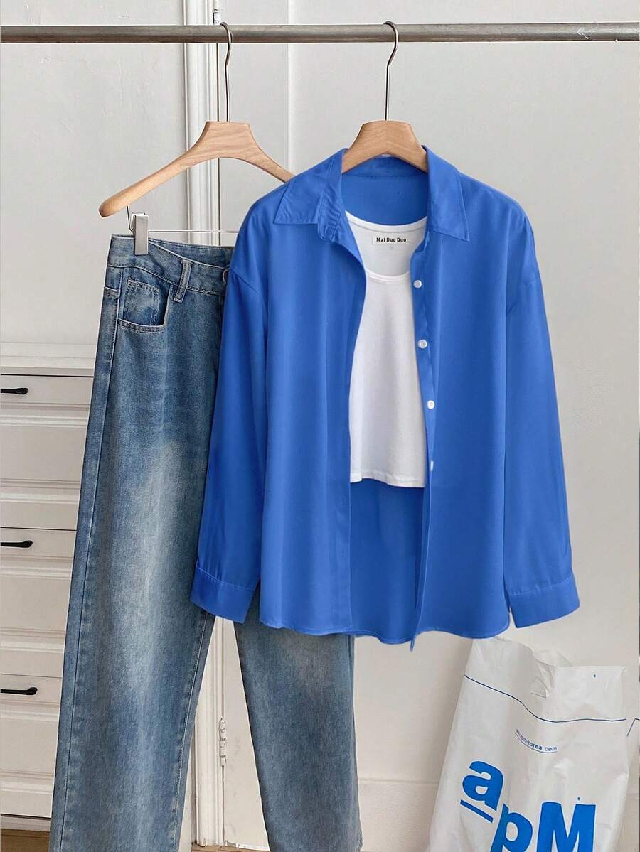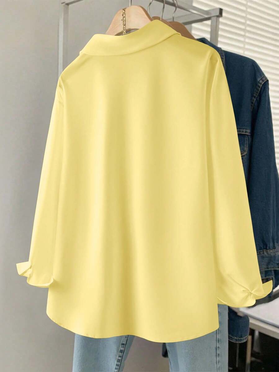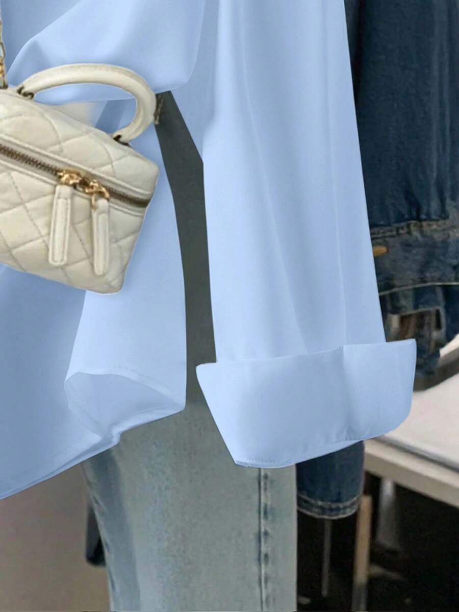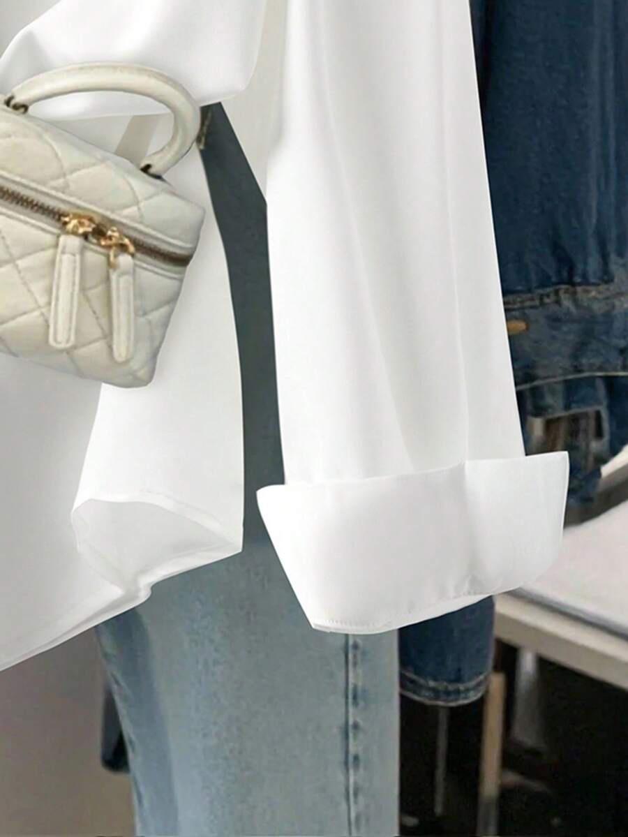 INAWLY Camisa feminina casual de manga comprida com caimento solto, minimalista e versátil para uso diário
