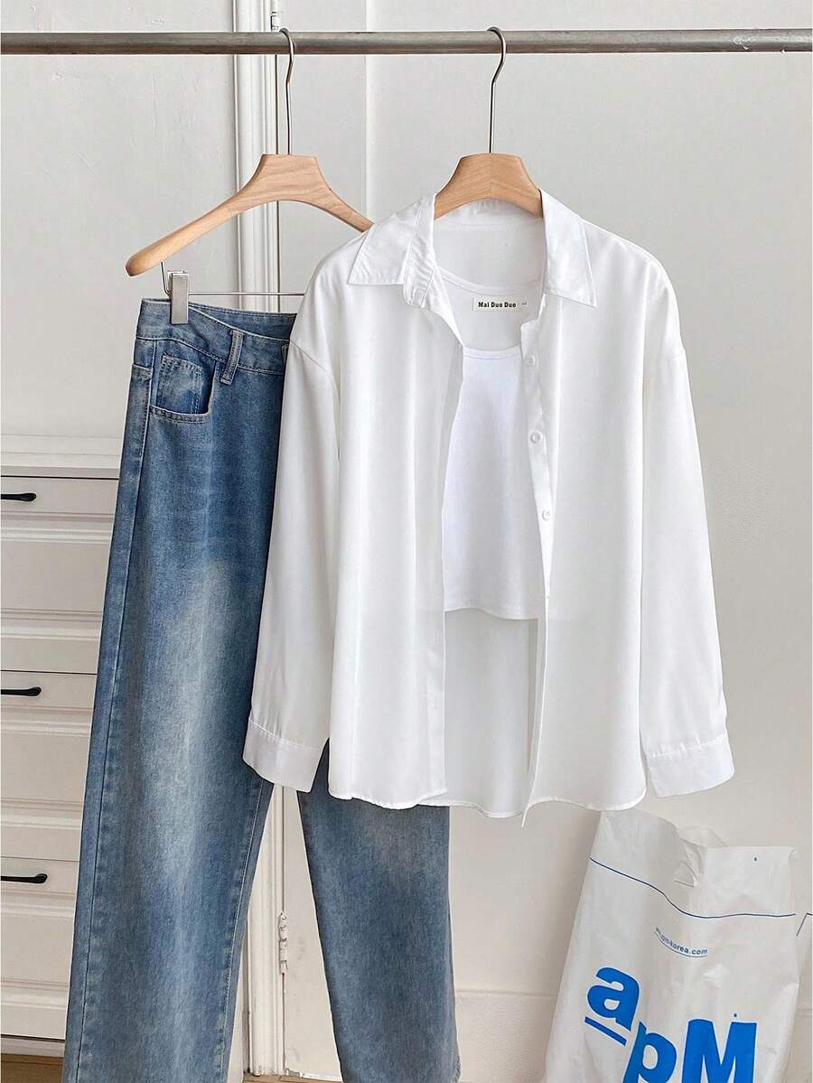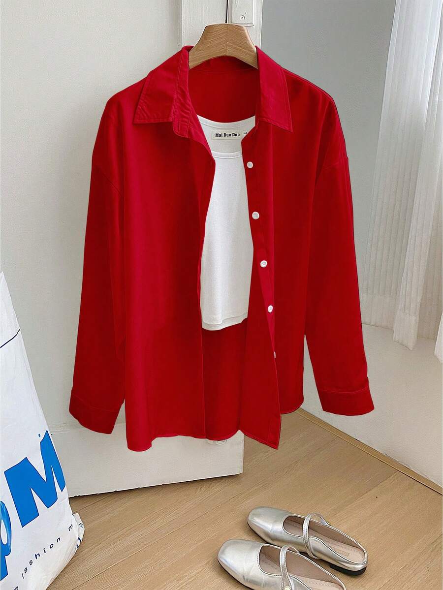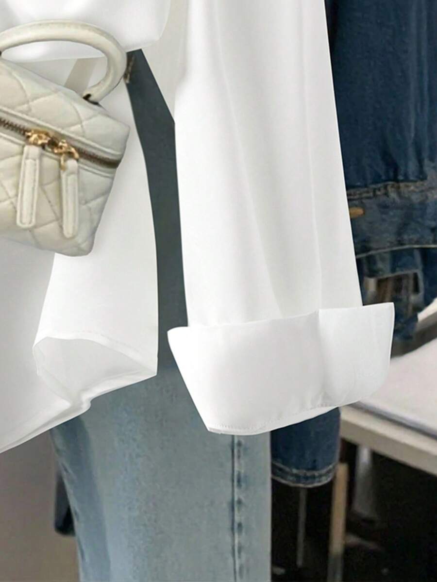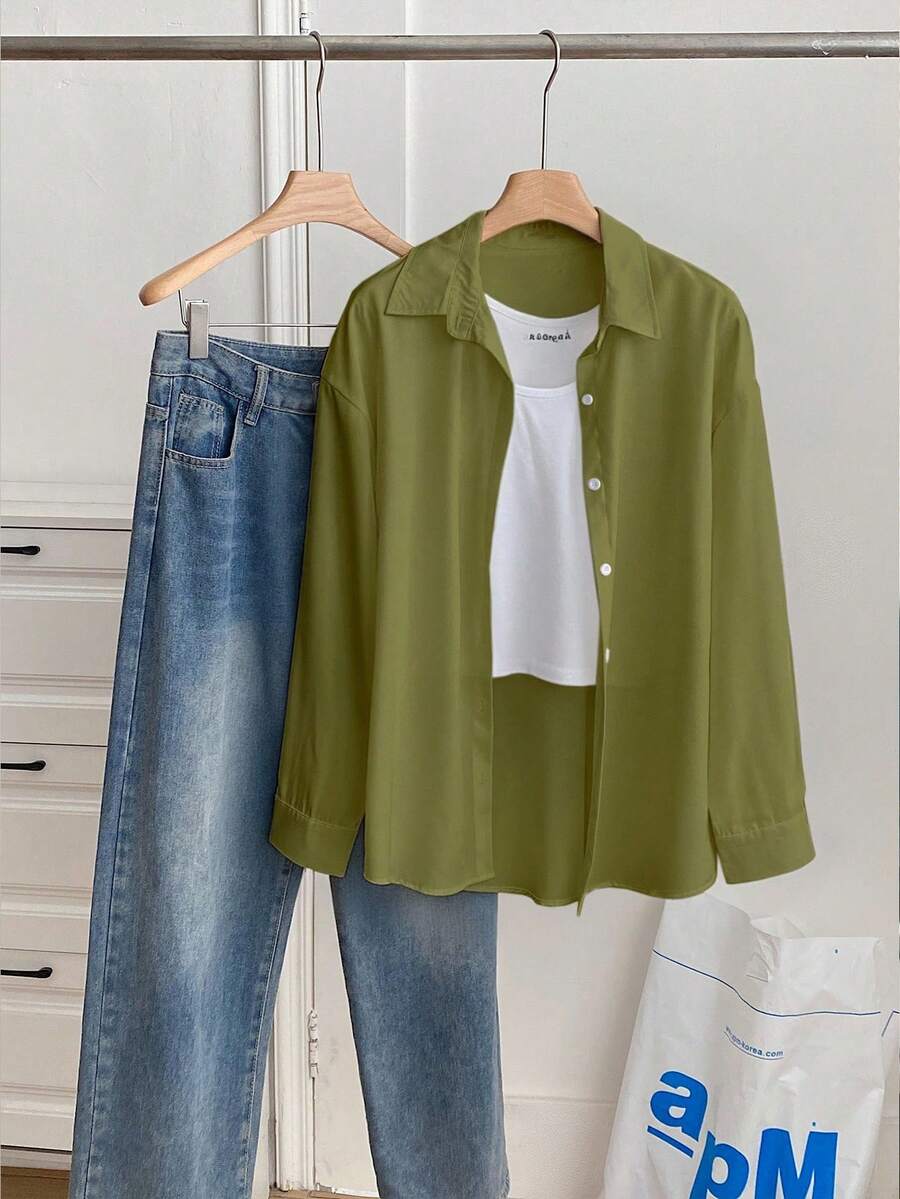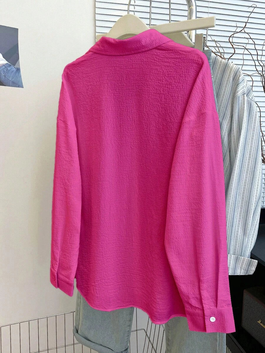 INAWLY Camisa feminina casual de manga comprida com caimento solto, minimalista e versátil para uso diário