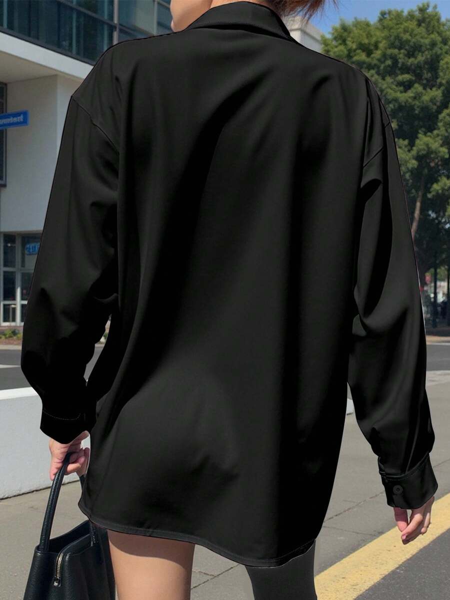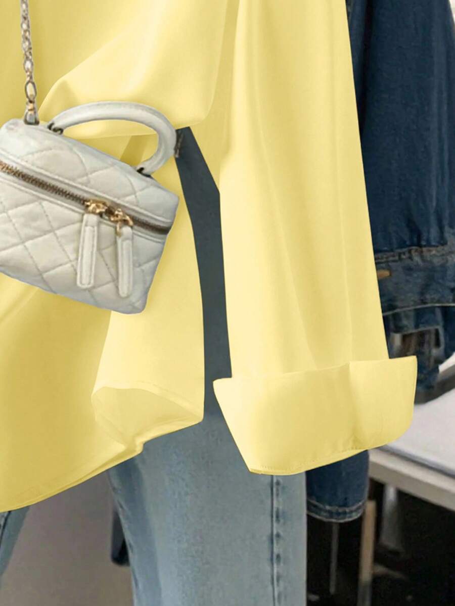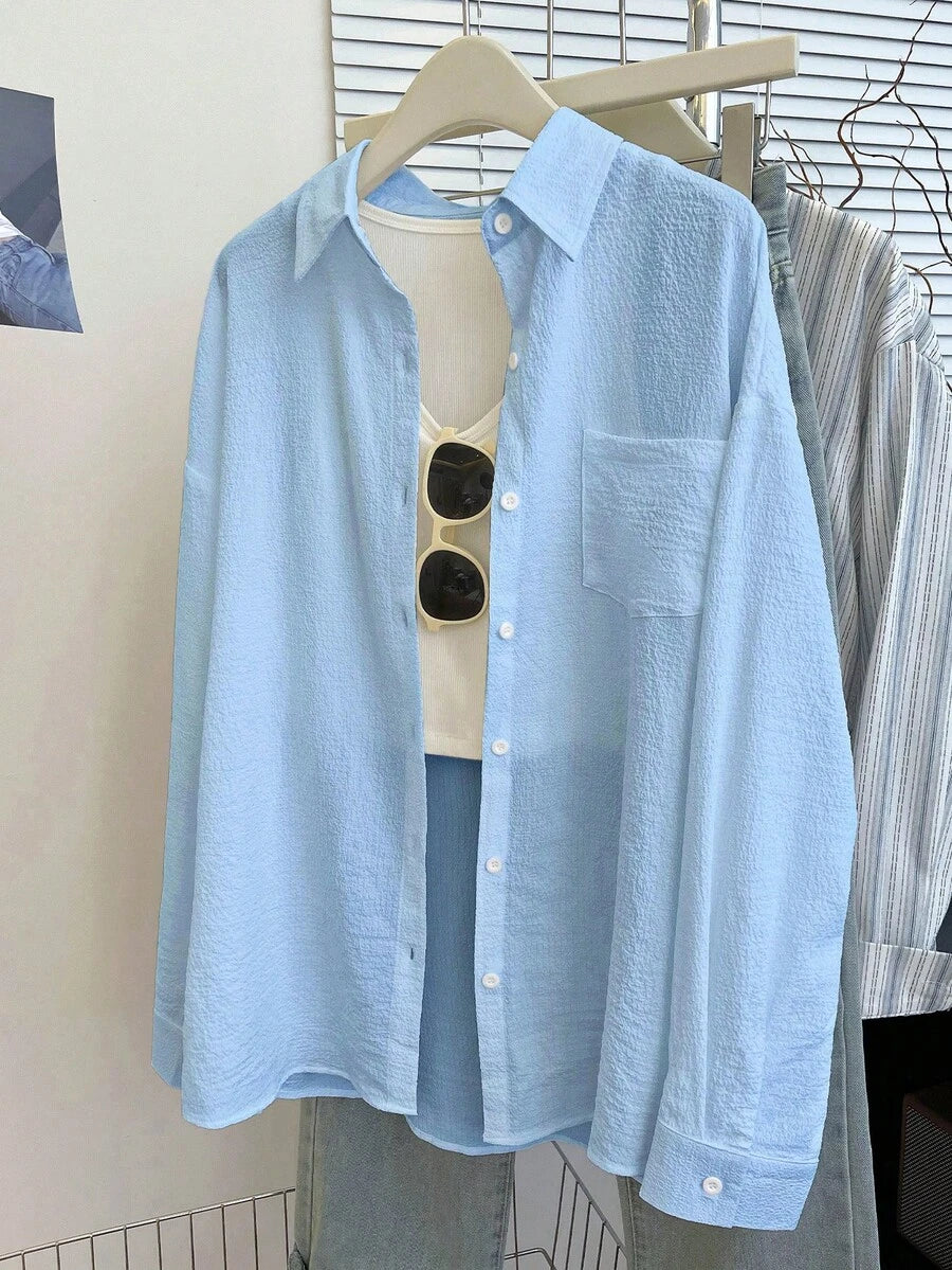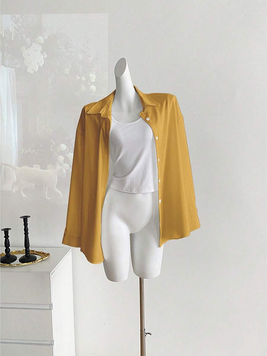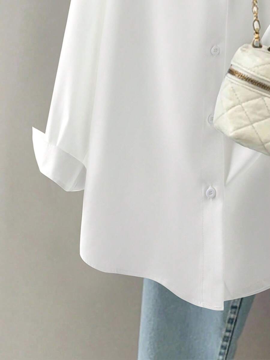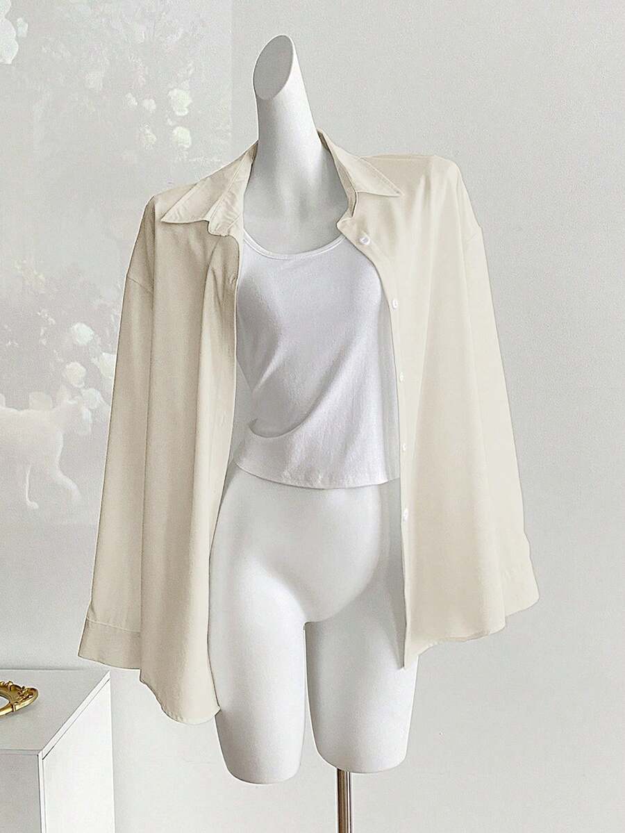 INAWLY Camisa feminina casual de manga comprida com caimento solto, minimalista e versátil para uso diário