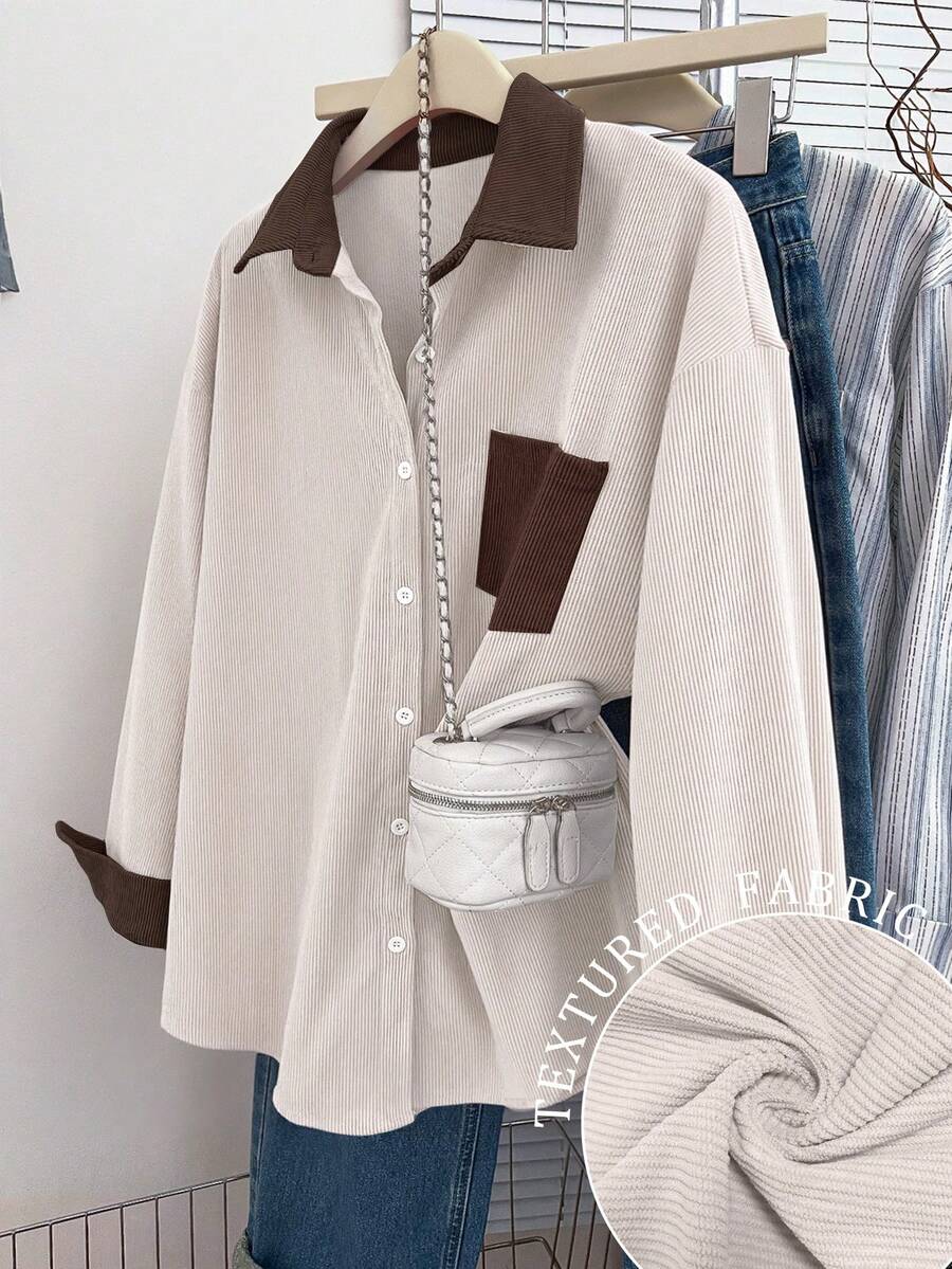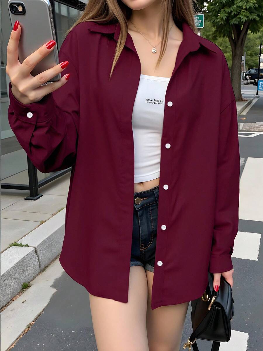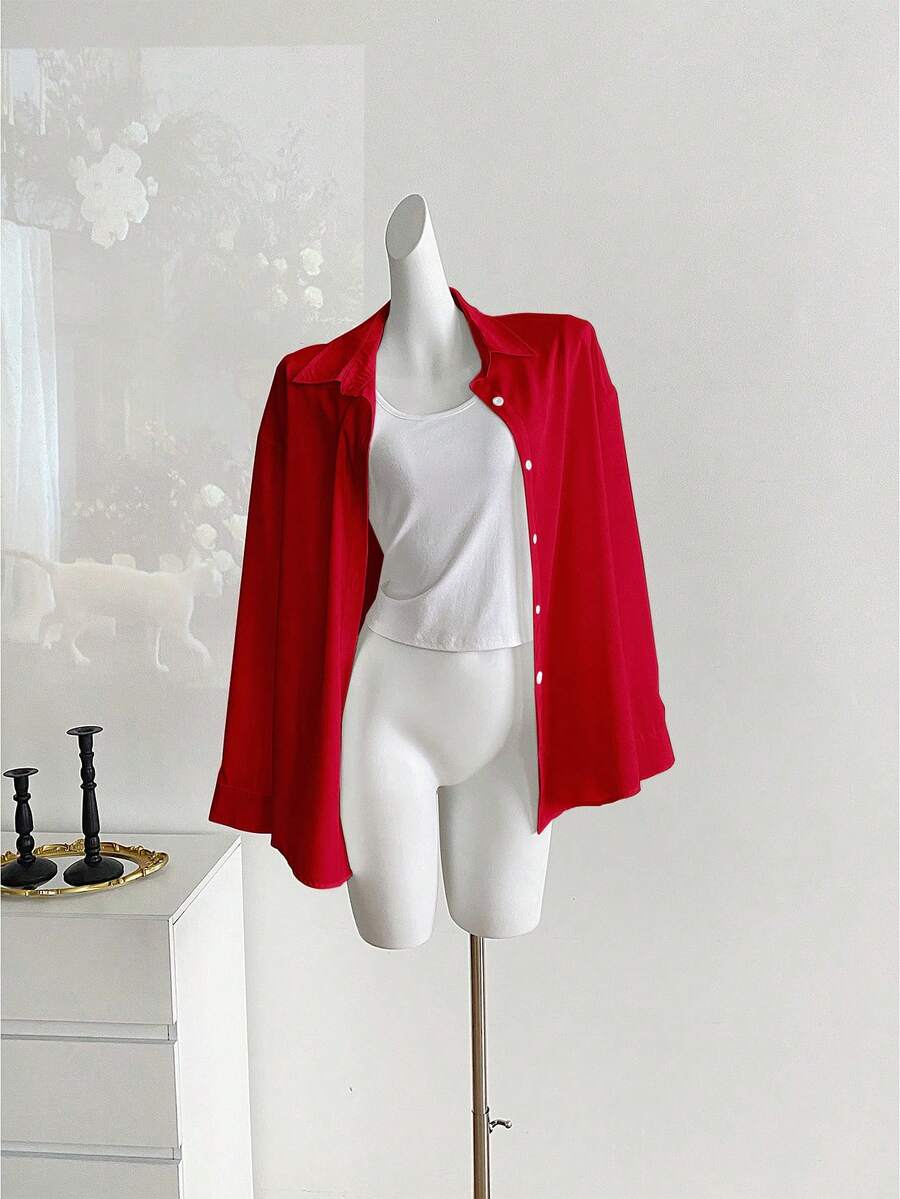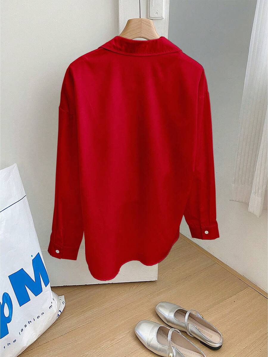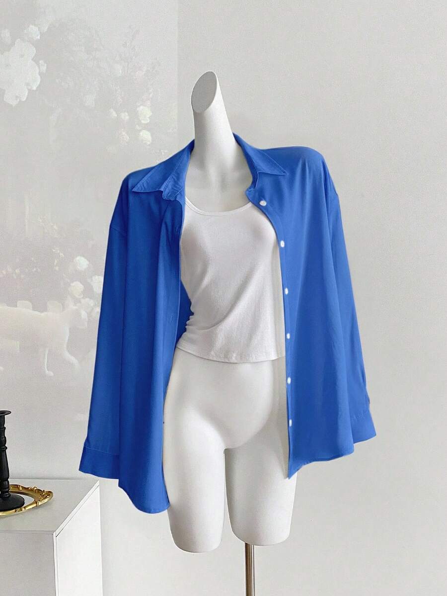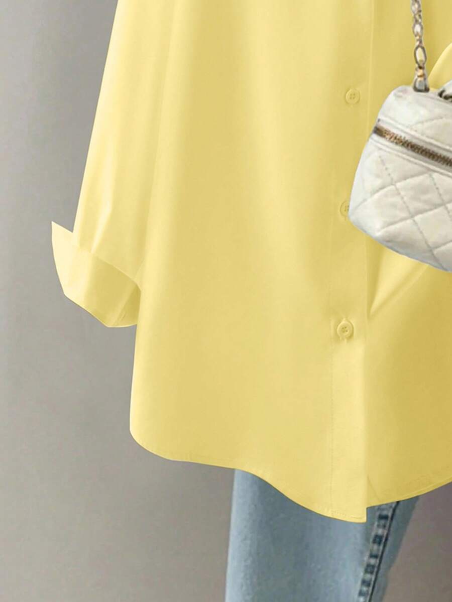 INAWLY Camisa feminina casual de manga comprida com caimento solto, minimalista e versátil para uso diário