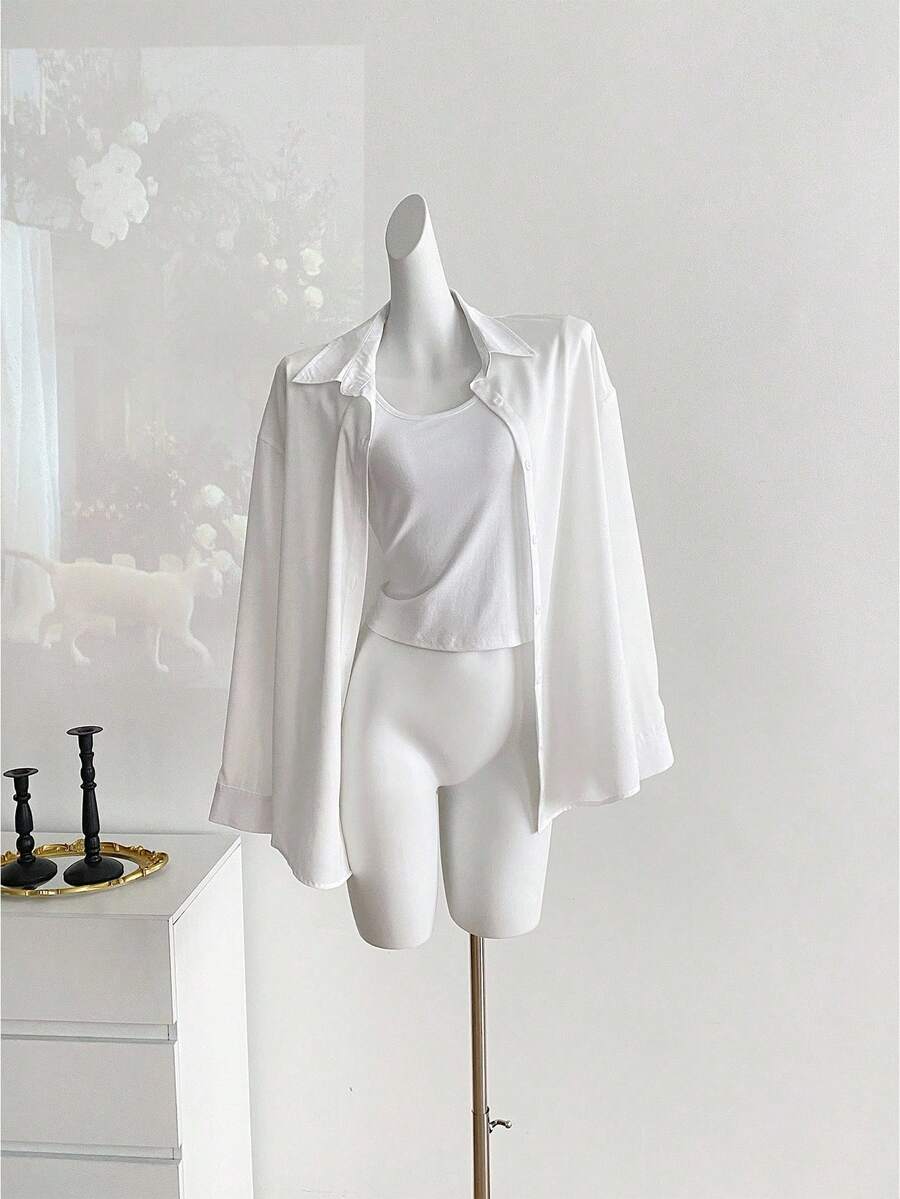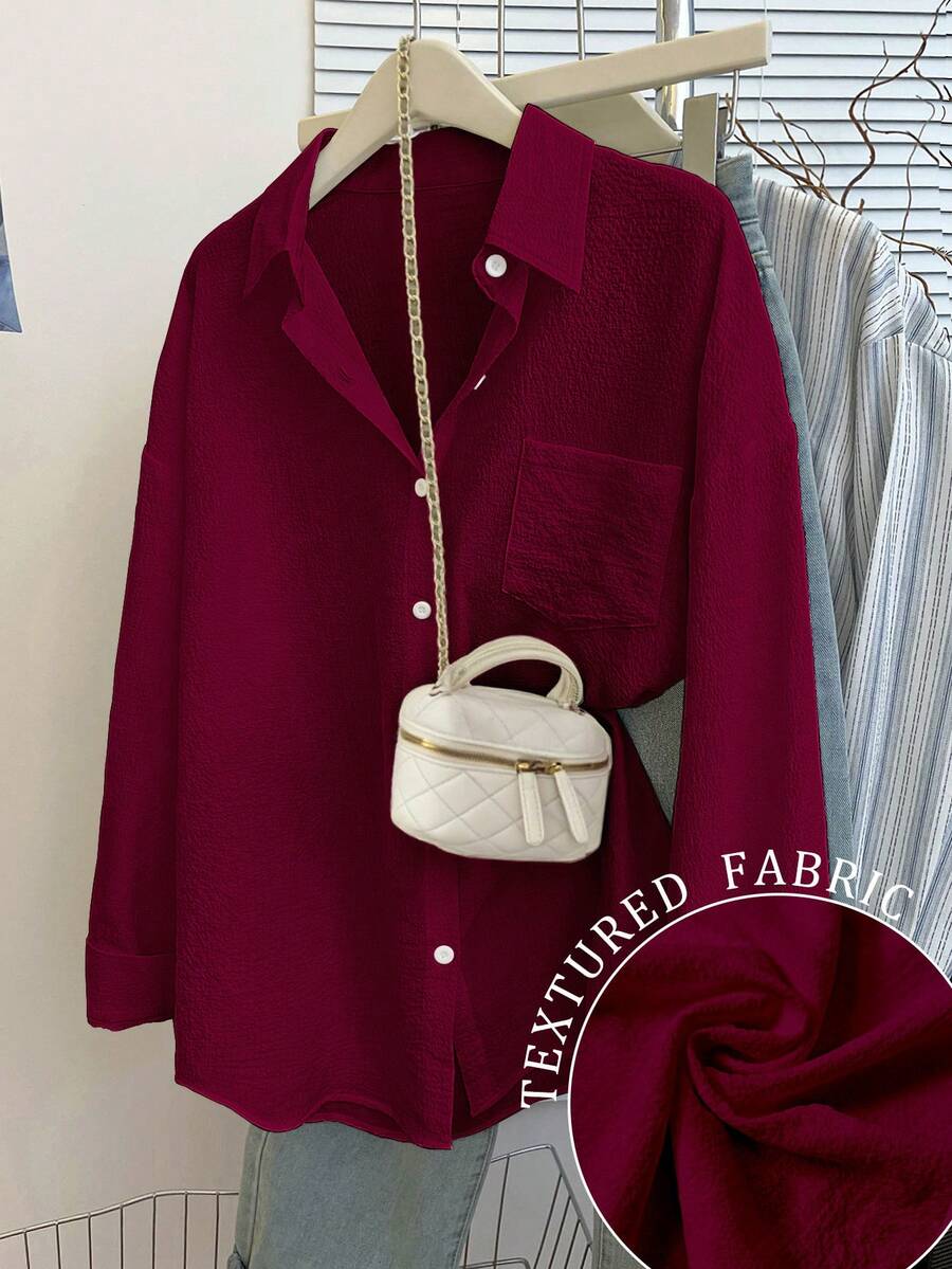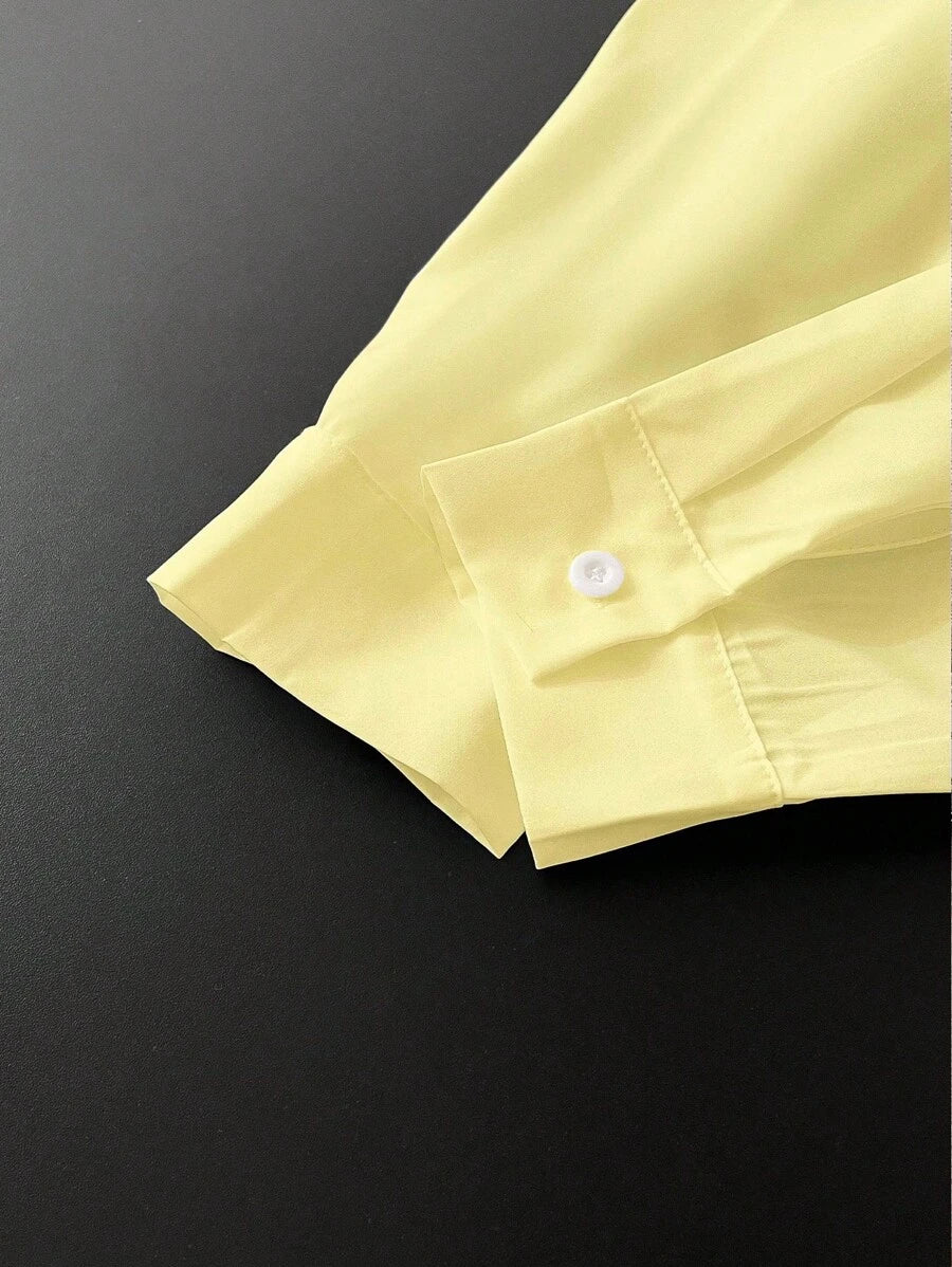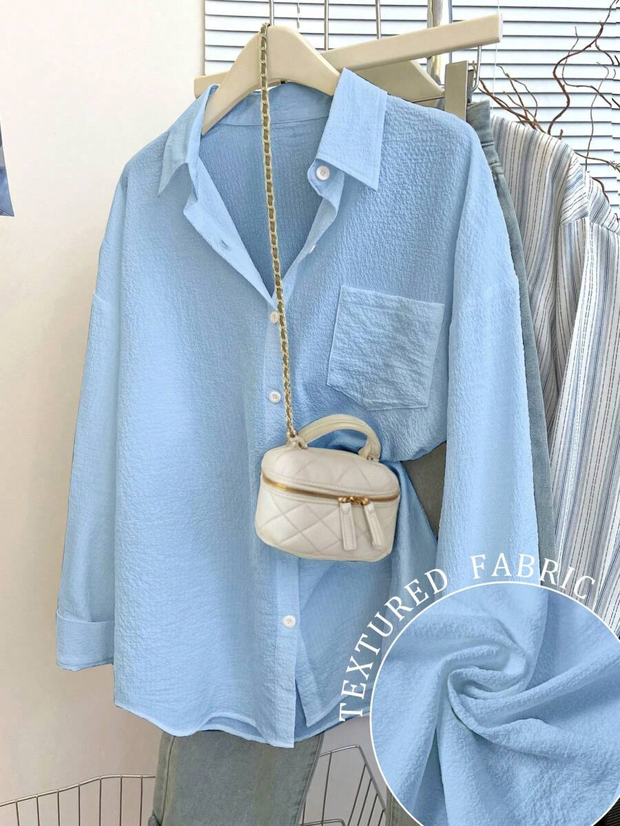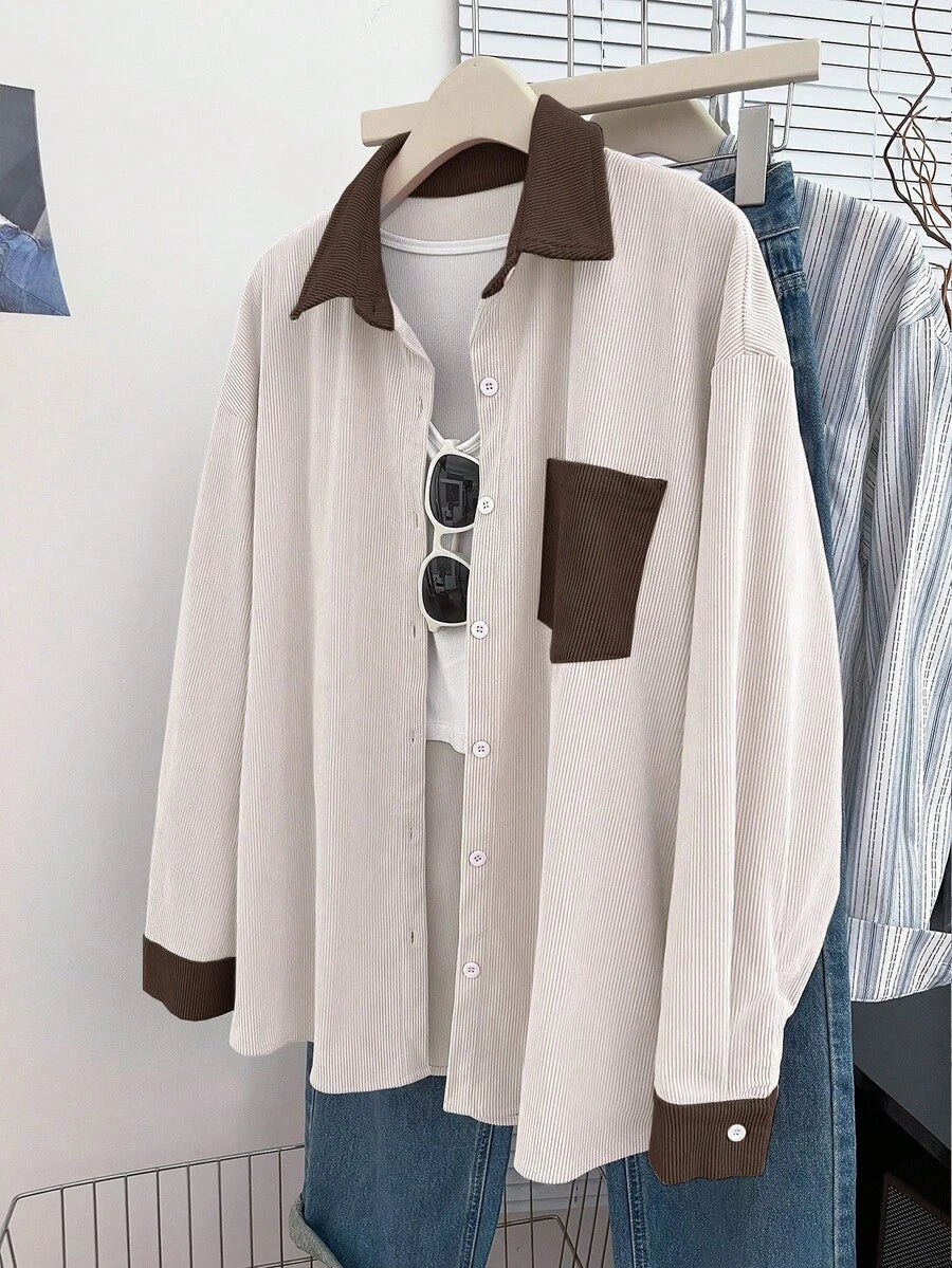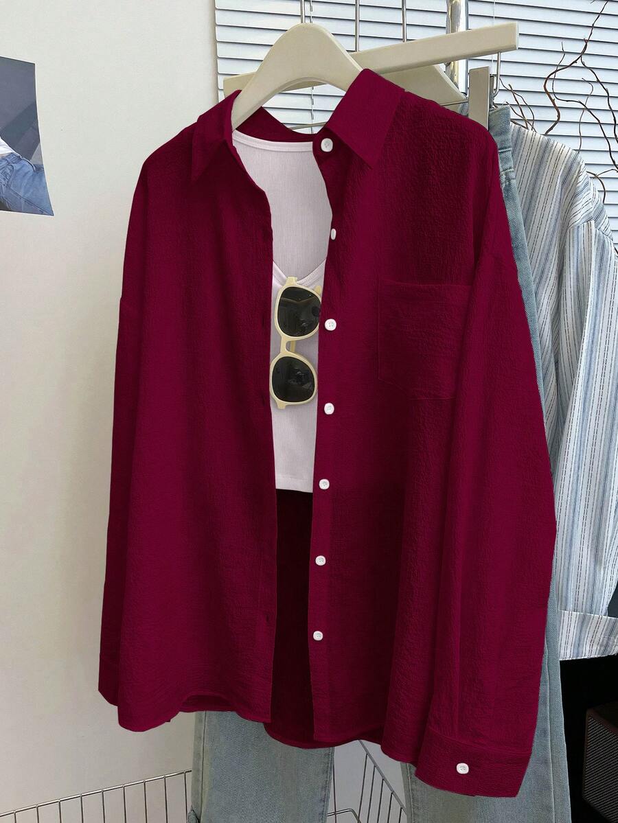 INAWLY Camisa feminina casual de manga comprida com caimento solto, minimalista e versátil para uso diário