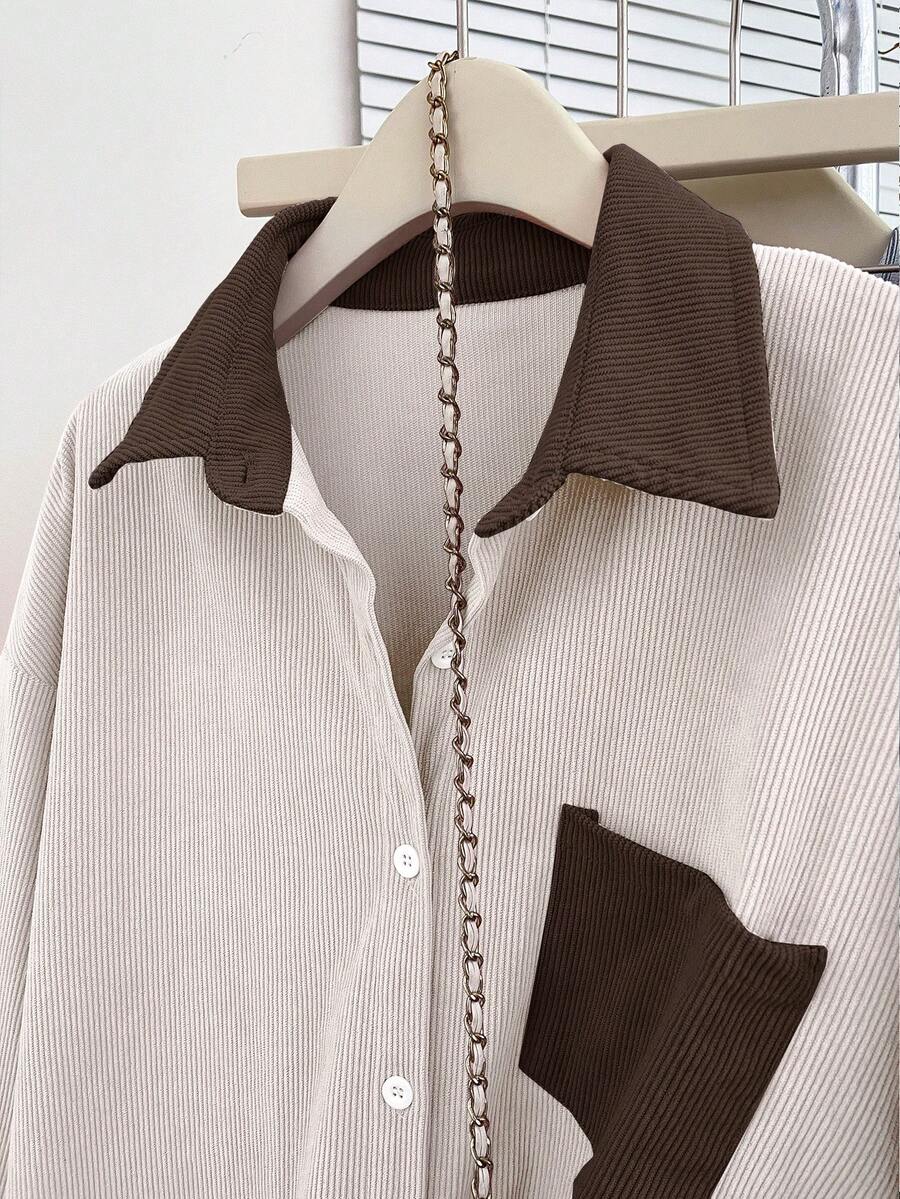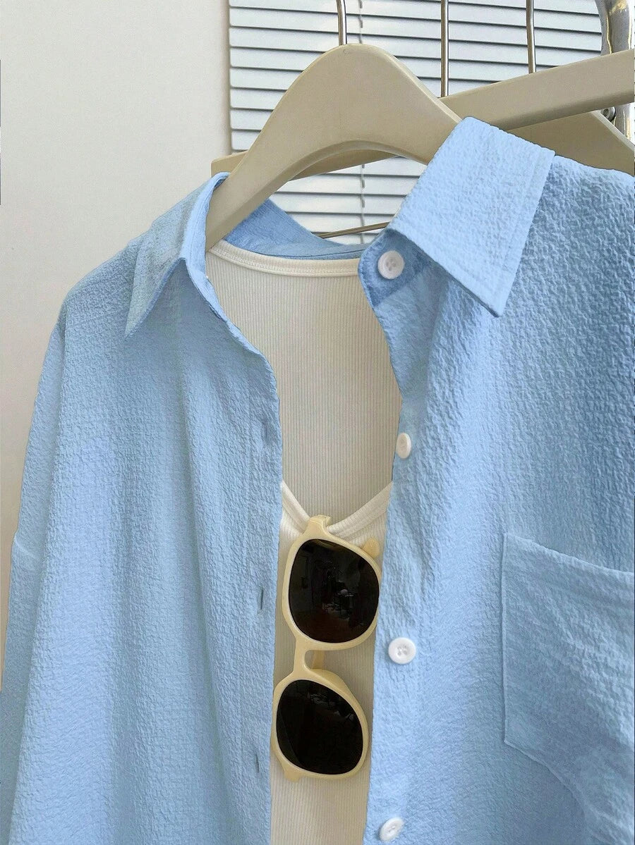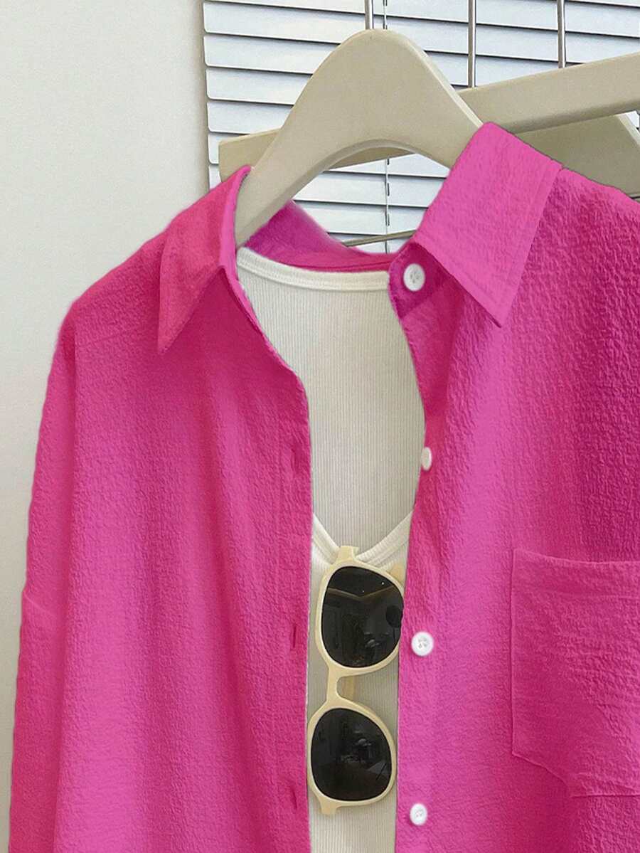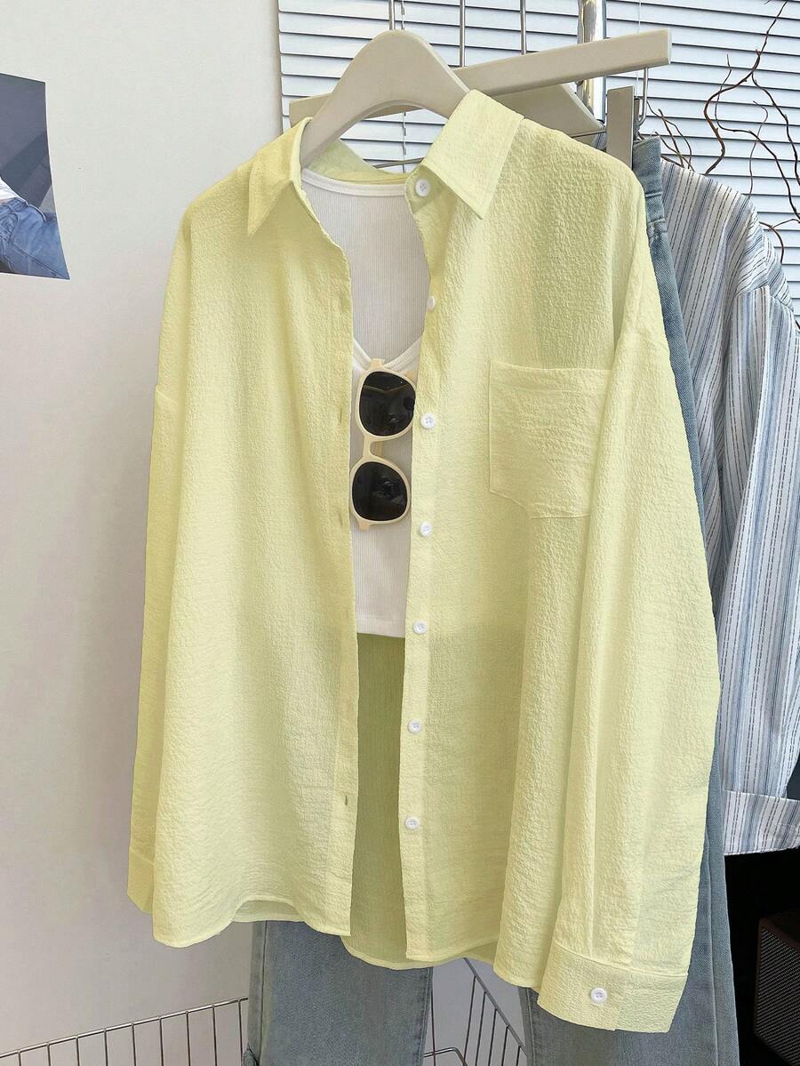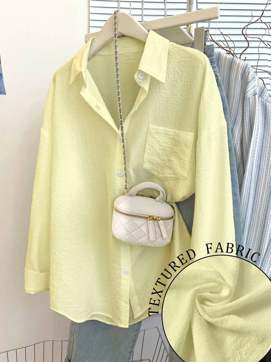 INAWLY Camisa feminina casual de manga comprida com caimento solto, minimalista e versátil para uso diário