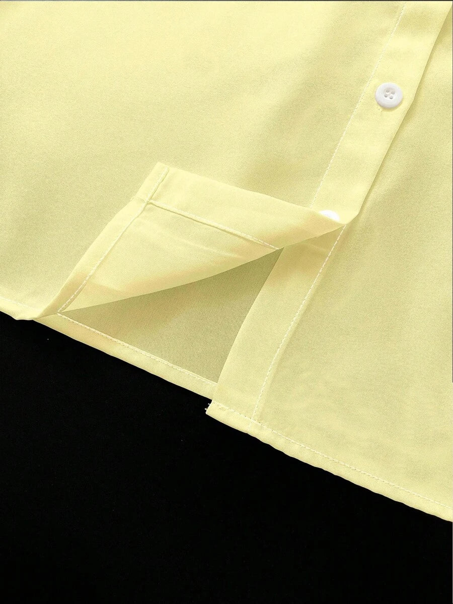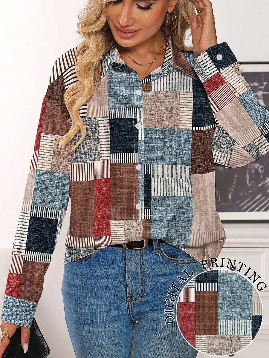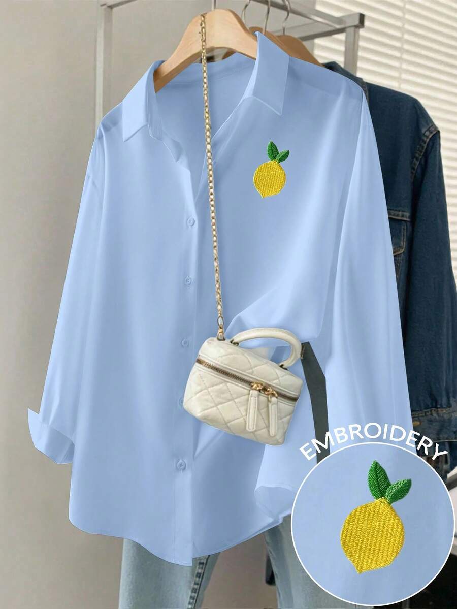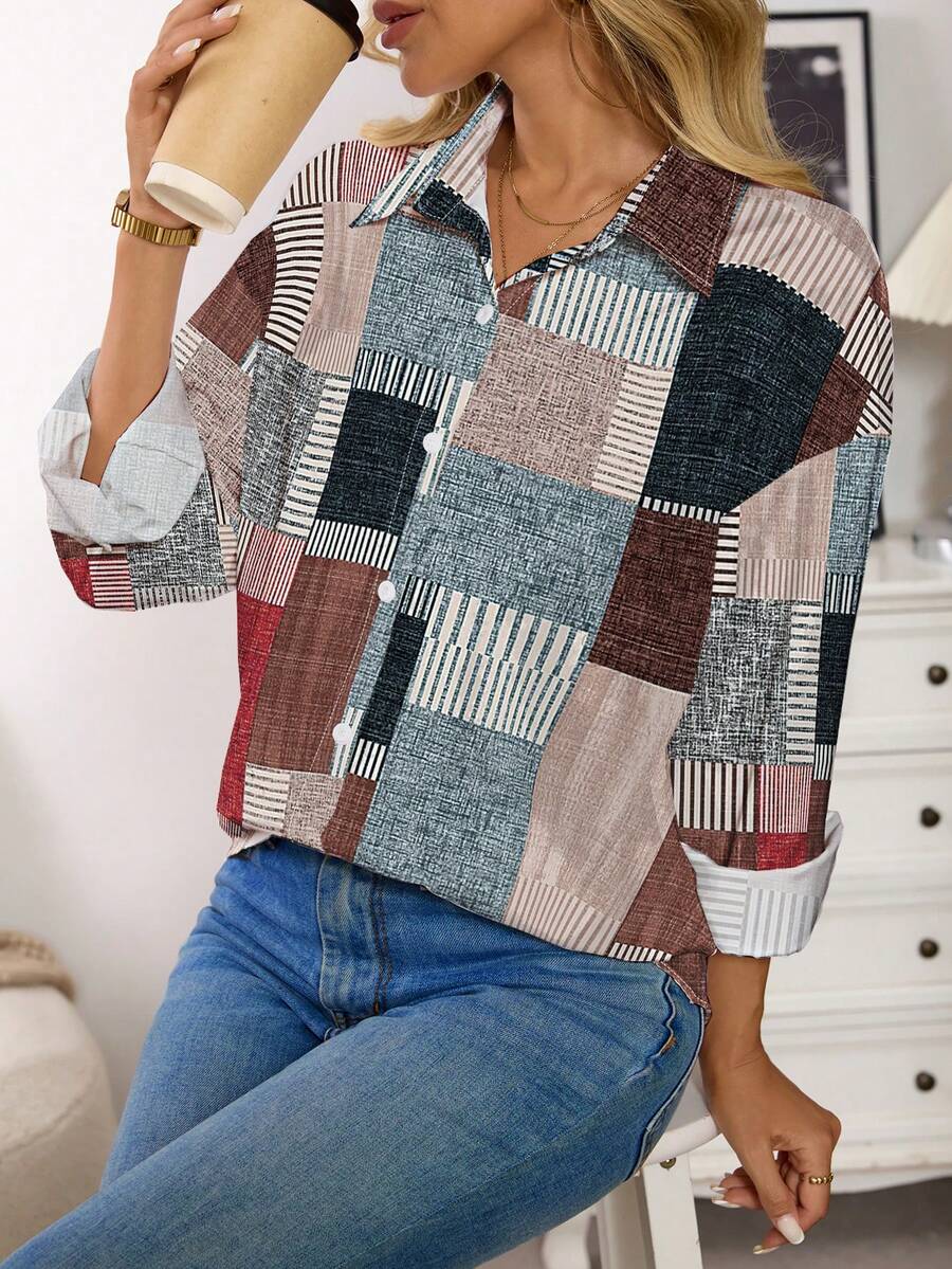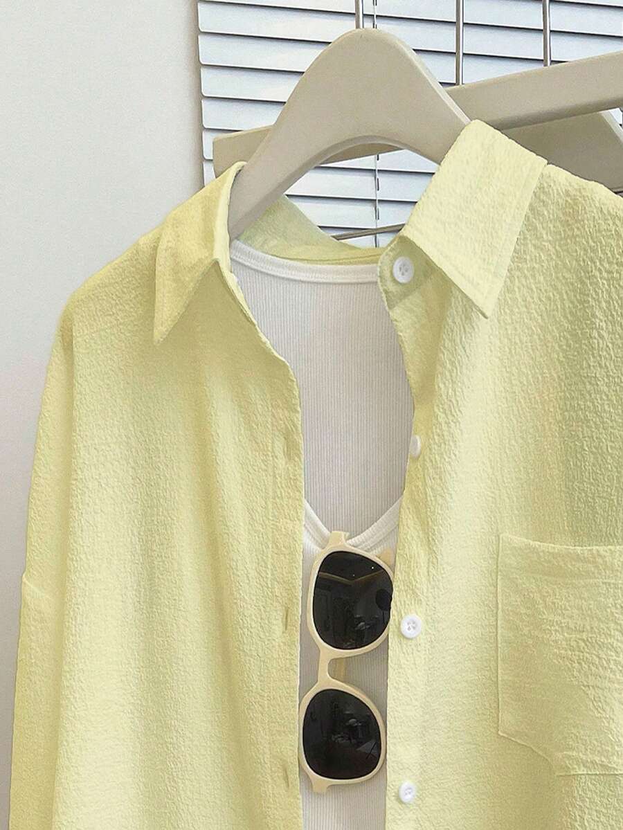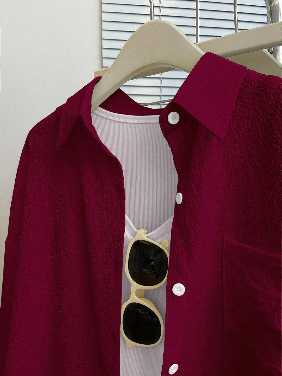 INAWLY Camisa feminina casual de manga comprida com caimento solto, minimalista e versátil para uso diário