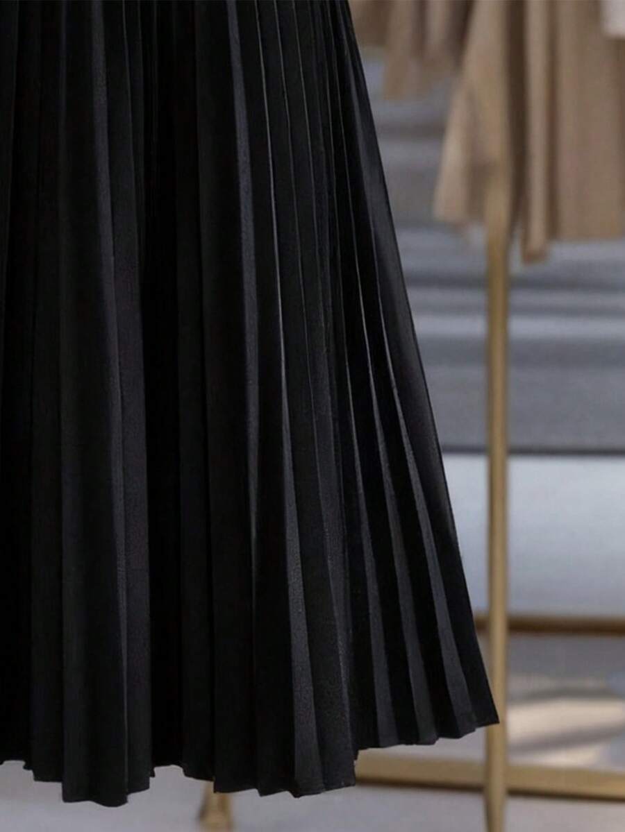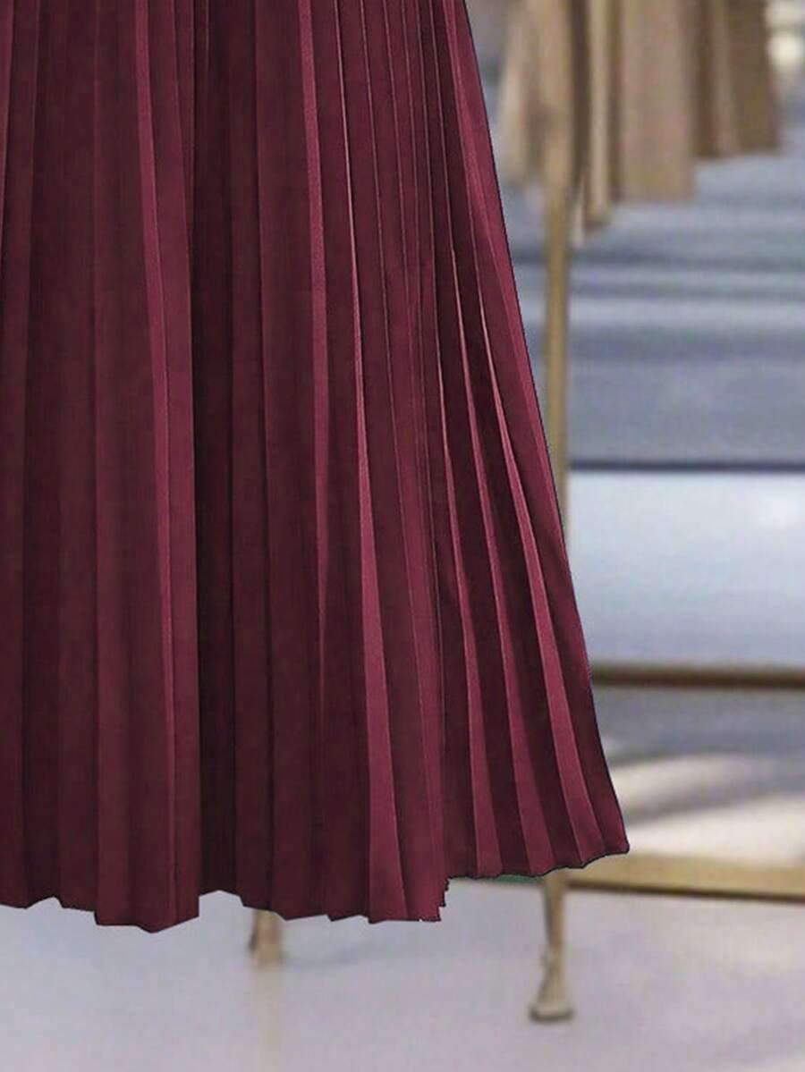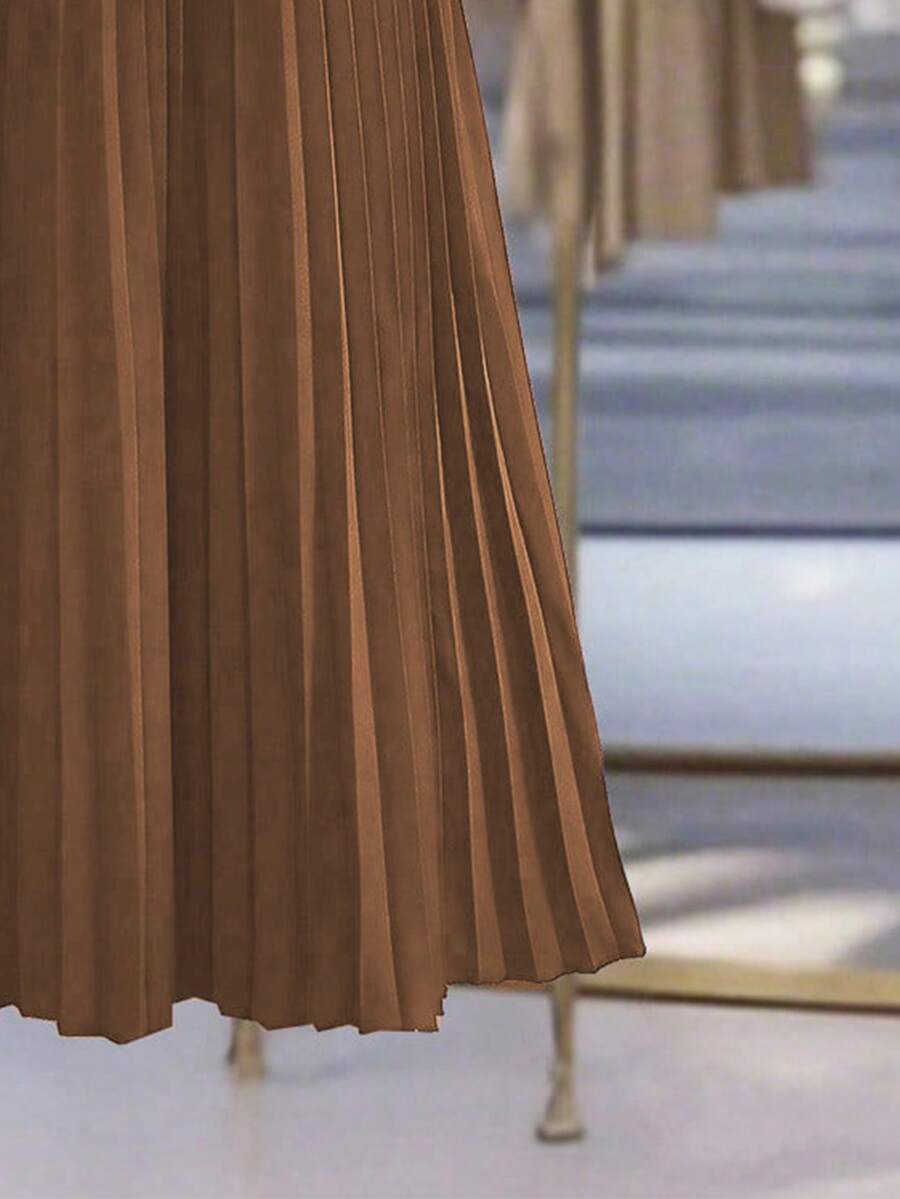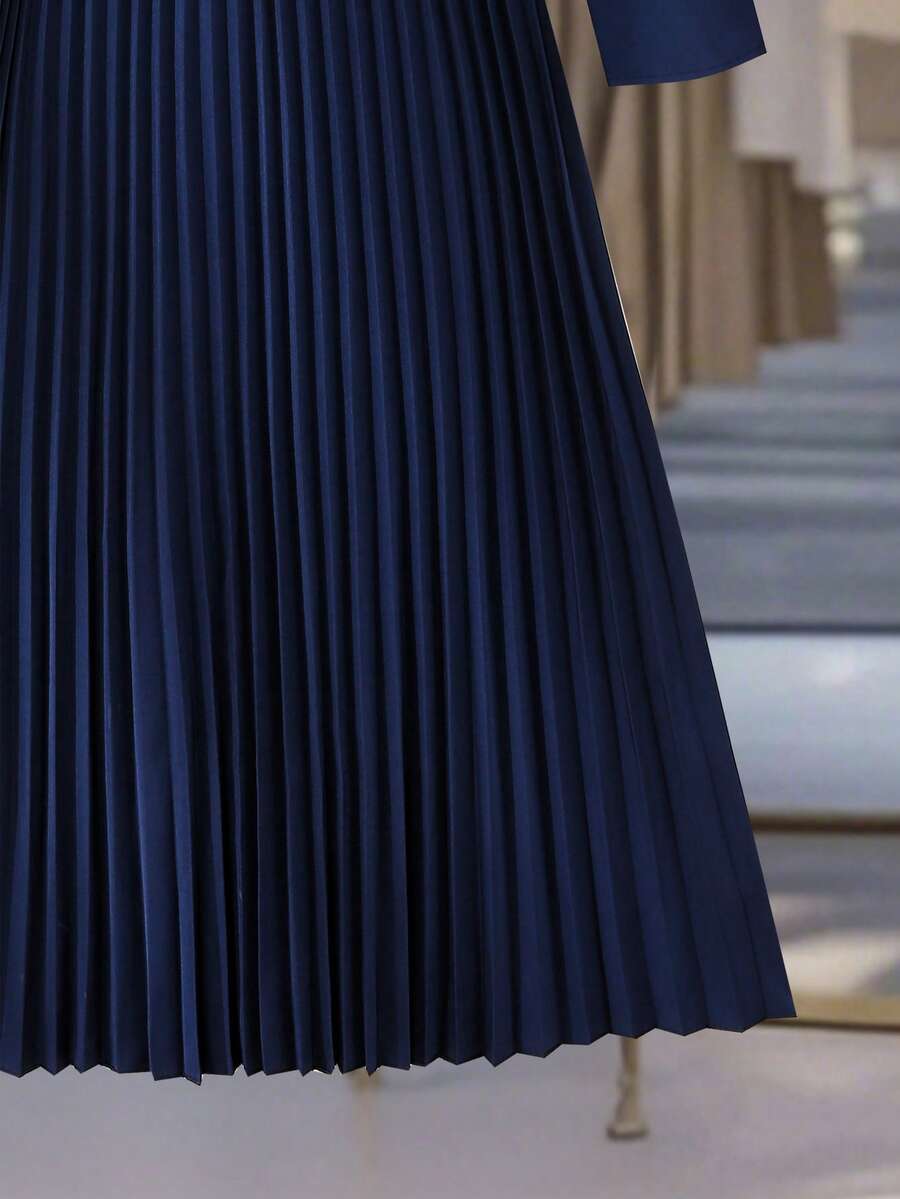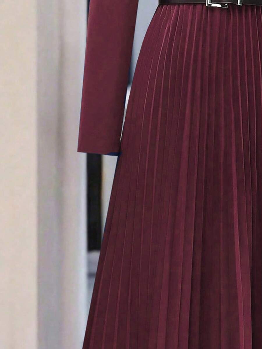 Vestido-camisa feminino elegante, plissado, de manga comprida e botões (cinto não incluído), outono